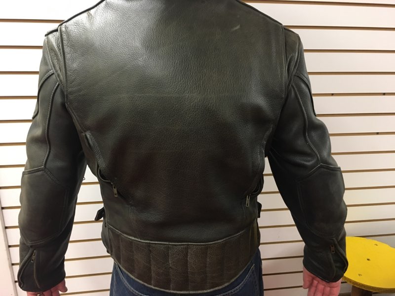 Elbows and shoulders are reinforced with extra leather and the jacket is long in the back.